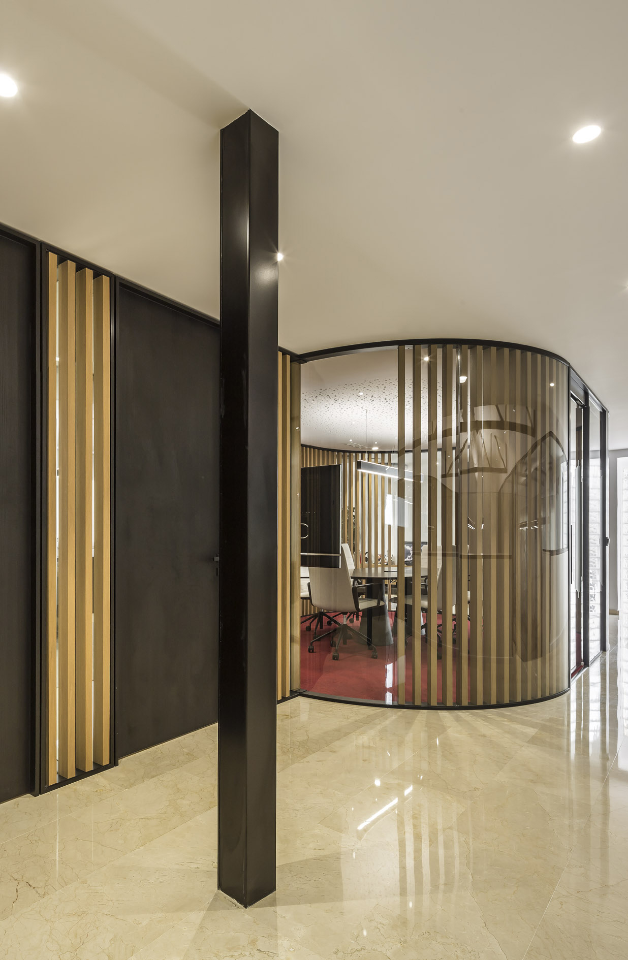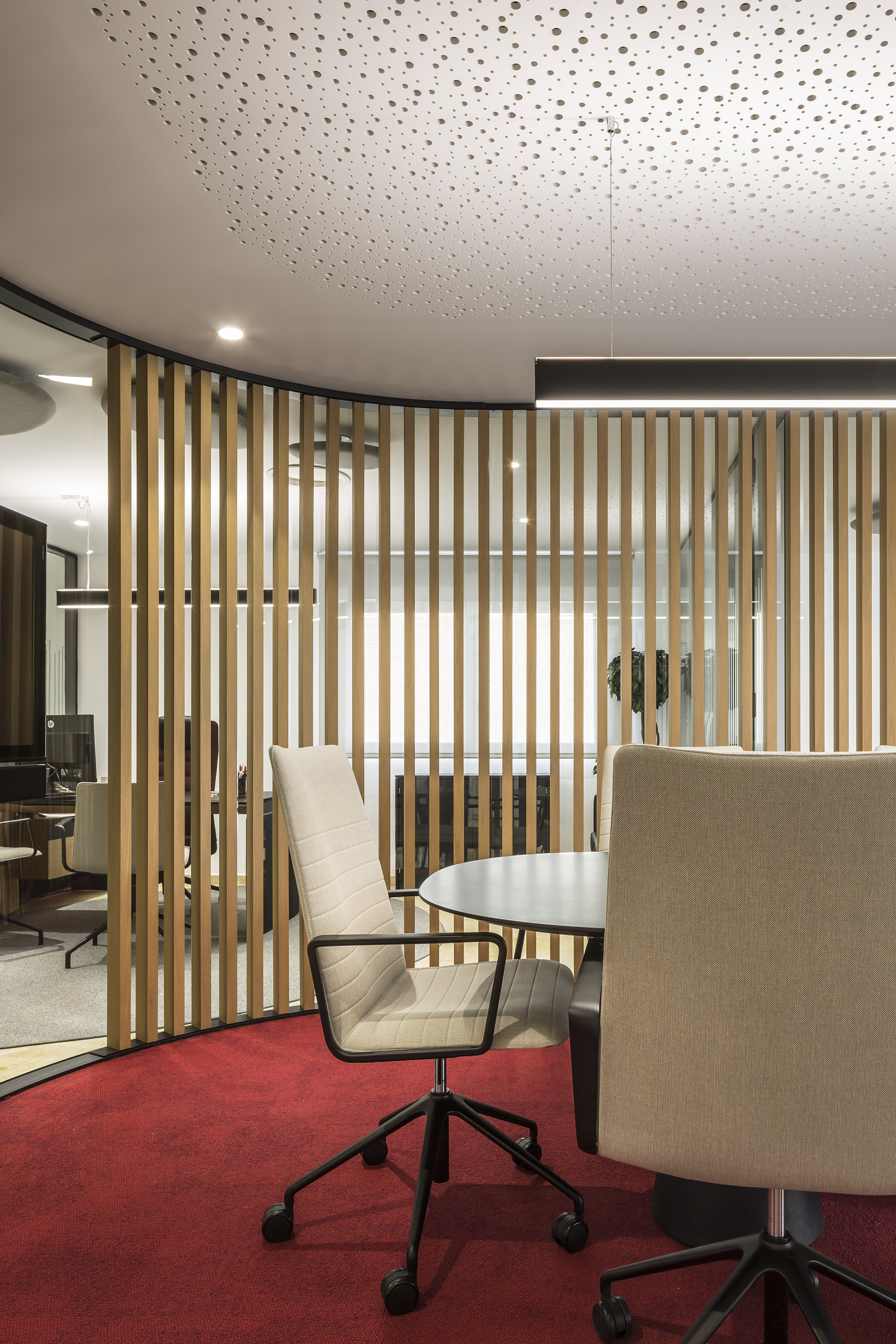 Its deep vertical relief creates architectural presence while maintaining a sense of flow—ideal for workspaces where privacy and visual connection need to coexist.